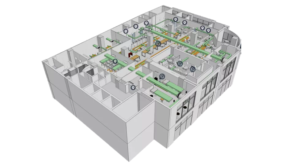 • Seamlessly recreate your assets, facilities, and operations with high-fidelity 3D models.